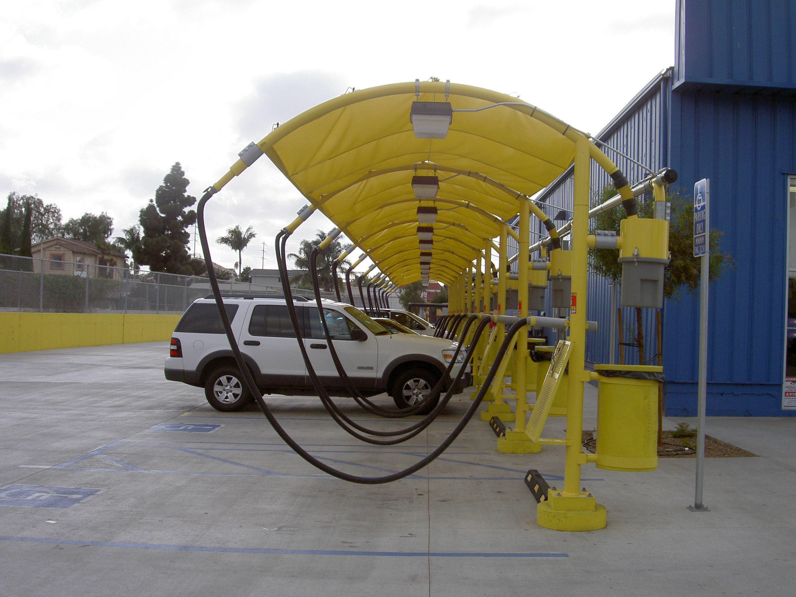 Plans were developed for a fully automated car wash with parking spaces for vacuums.